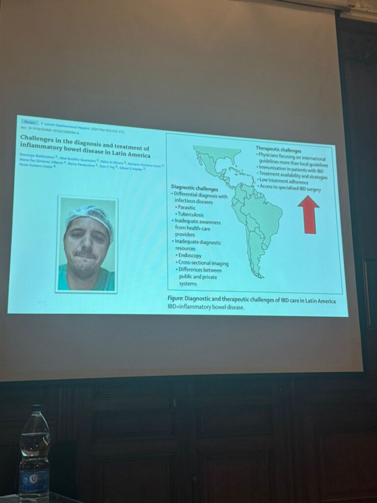 Además, tuve el privilegio de actuar como moderador de la sesión de casos clínicos, donde se presentaron y discutieron experiencias de pacientes con enfermedad de Crohn y colitis ulcerativa. Durante la sesión, cada expositor presentó un caso complejo de manejo quirúrgico, y junto a un panel de expertos internacionales analizamos las decisiones clínicas, los tiempos quirúrgicos y las distintas estrategias terapéuticas posibles. Este tipo de espacios promueven el aprendizaje colaborativo y permiten contrastar diferentes enfoques de tratamiento en escenarios reales.