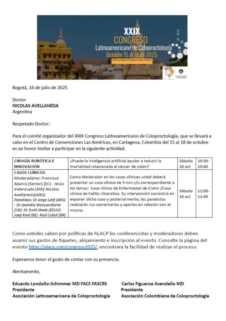 Eventos como el Congreso Latinoamericano de Coloproctología son fundamentales para seguir fortaleciendo la especialidad en nuestra región. América Latina cuenta con grandes talentos en cirugía colorrectal, pero aún enfrenta desafíos relacionados con la formación continua, el acceso a tecnología y la generación de evidencia científica propia.