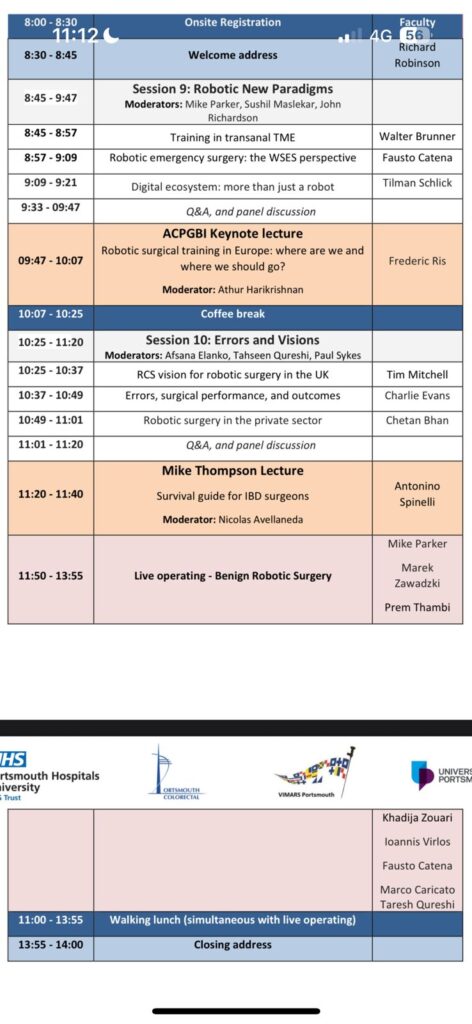 Del 10 al 13 de junio tuve el honor de participar como faculty en el Portsmouth Colorectal Congress 2025, en el Reino Unido, uno de los congresos más prestigiosos del mundo en cirugía colorrectal avanzada y robótica.