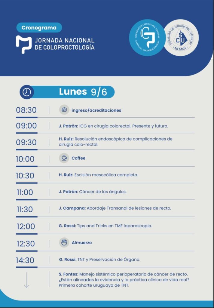 Los días 9 y 10 de junio tuve el honor de participar como invitado internacional en la Jornada Nacional de Coloproctología, organizada por la Sociedad de Coloproctología del Uruguay. Este evento reunió a especialistas de toda América Latina con el objetivo de compartir conocimientos, debatir experiencias y actualizarse en los últimos avances en el diagnóstico y tratamiento de enfermedades del colon, recto y ano.